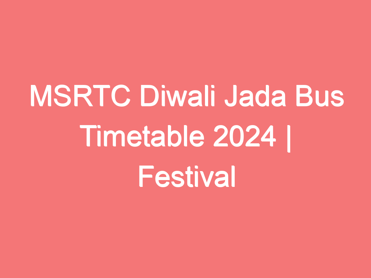 Complete MSRTC Msrtc Diwali Jada Bus 2024 special bus schedule 2025 — routes, departure times, ticket prices and booking details. Updated April 2026.