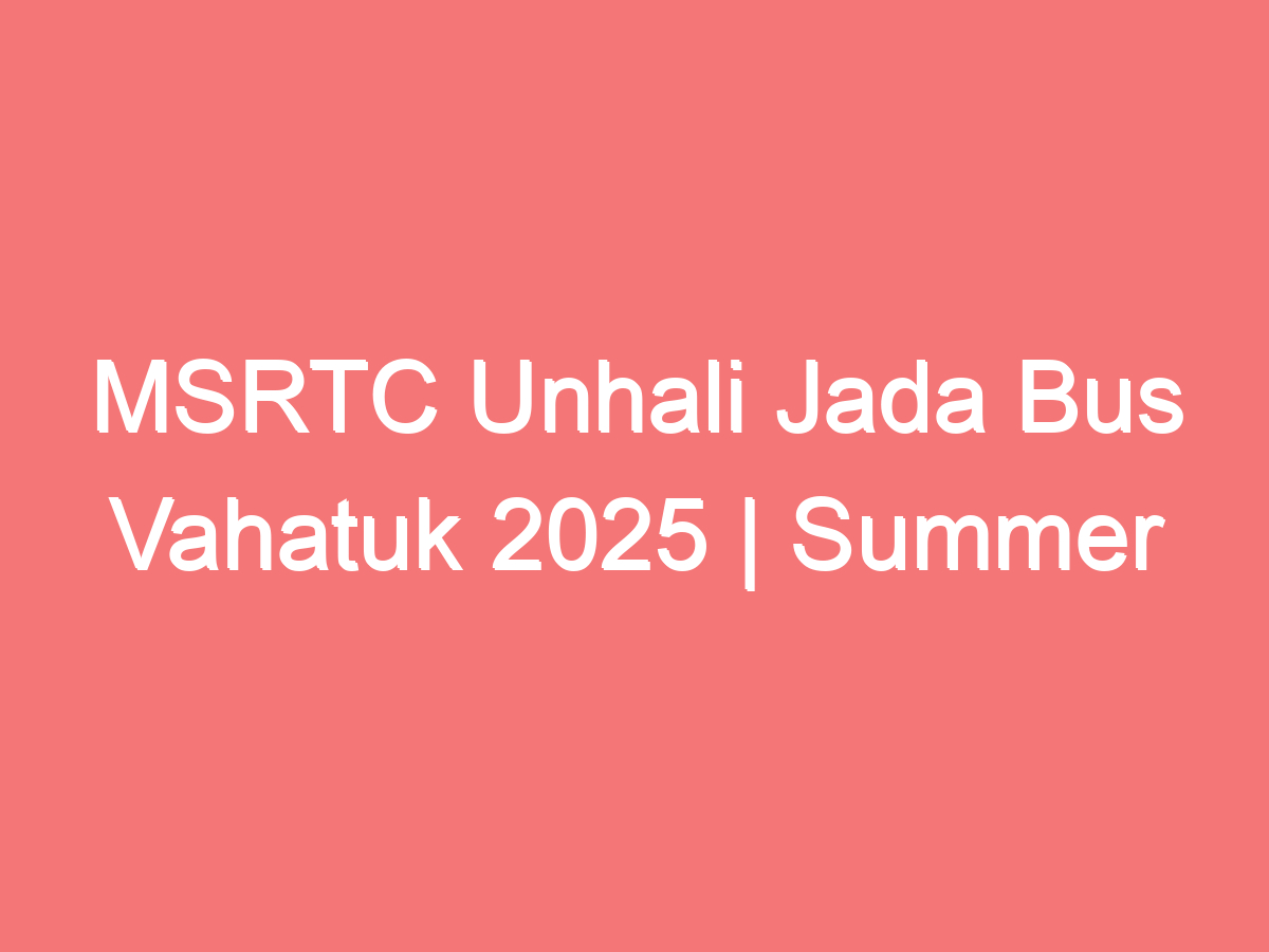 Complete MSRTC Unhali Jada Bus special bus schedule 2025 — routes, departure times, ticket prices and booking details. Updated April 2026.