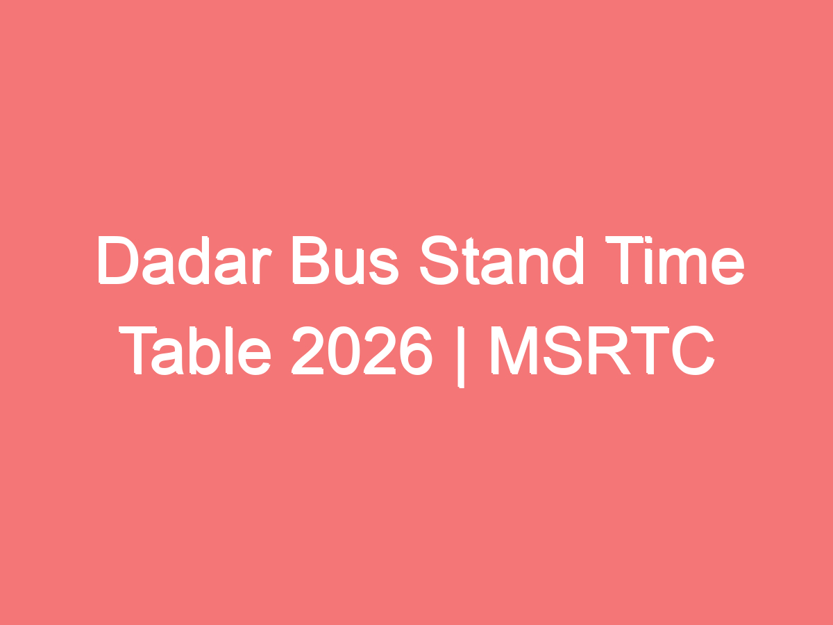 Dadar Bus Stand Timetable 2026