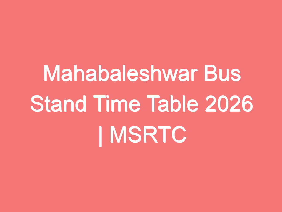 Mahabaleshwar Bus Stand Time Table 2026 | MSRTC
