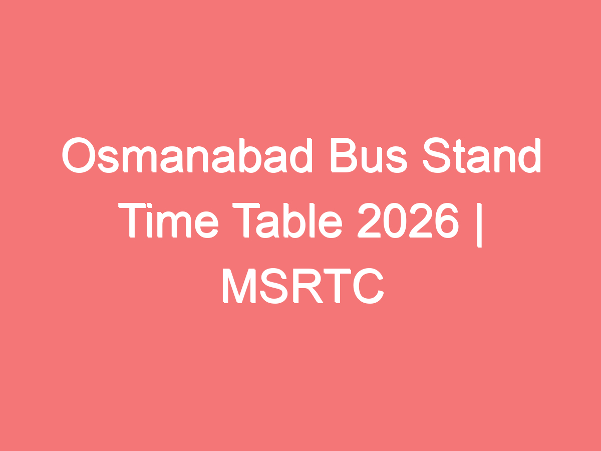 Osmanabad Bus Stand Time Table 2026 | MSRTC