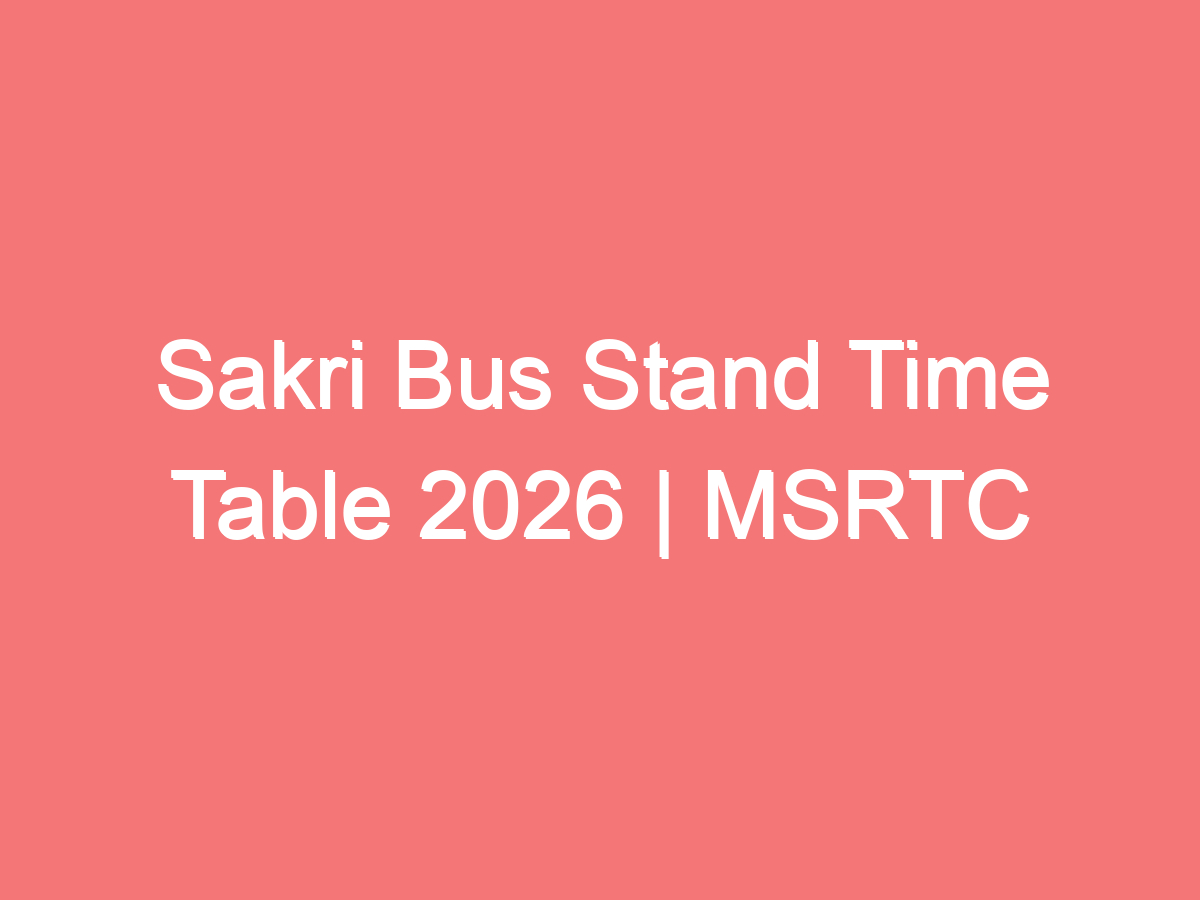 Sakri Bus Stand Time Table 2026 | MSRTC