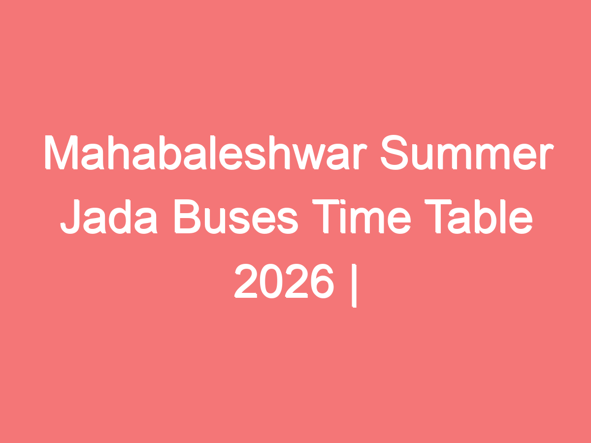 Mahabaleshwar Summer Jada Buses Timetable 2026